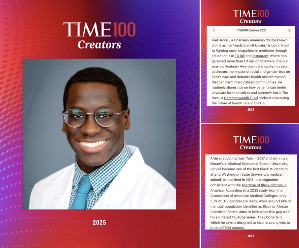 Dr. Bervell has landed on the TIME 100 list for most influential creators in the world for his content geared to racism in medicine. Appreciate all your hard work and dedication for the culture #BMIM